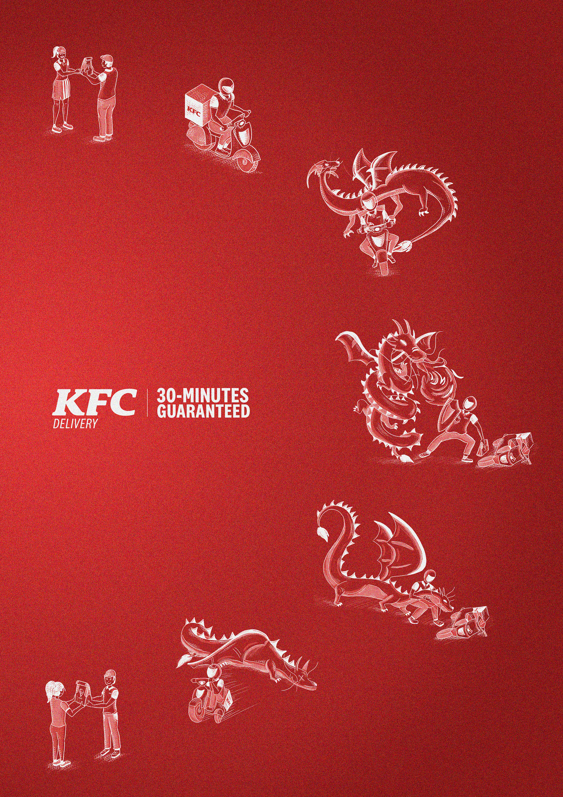 Even a dragon won't stop KFC's delivery guarantee.