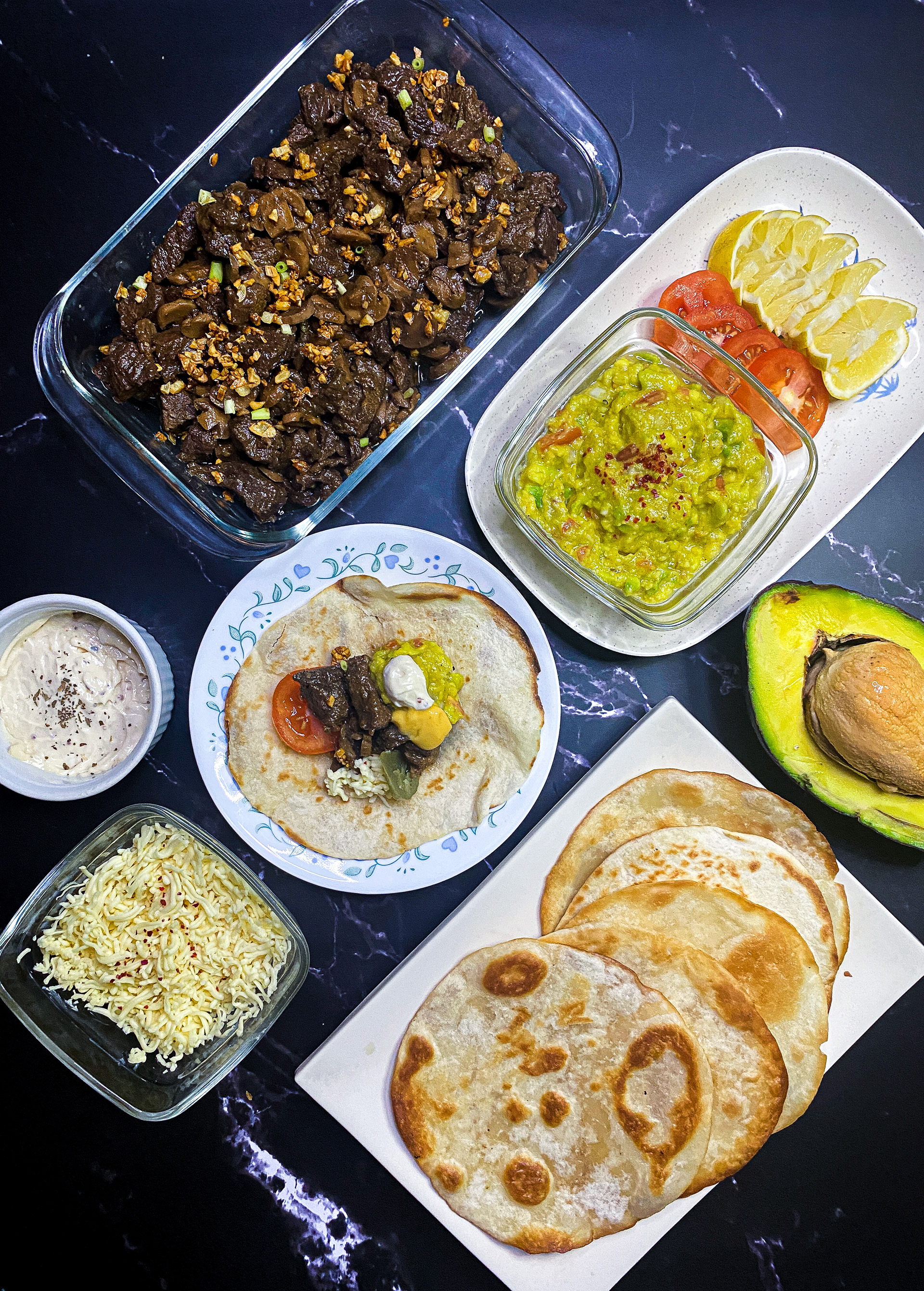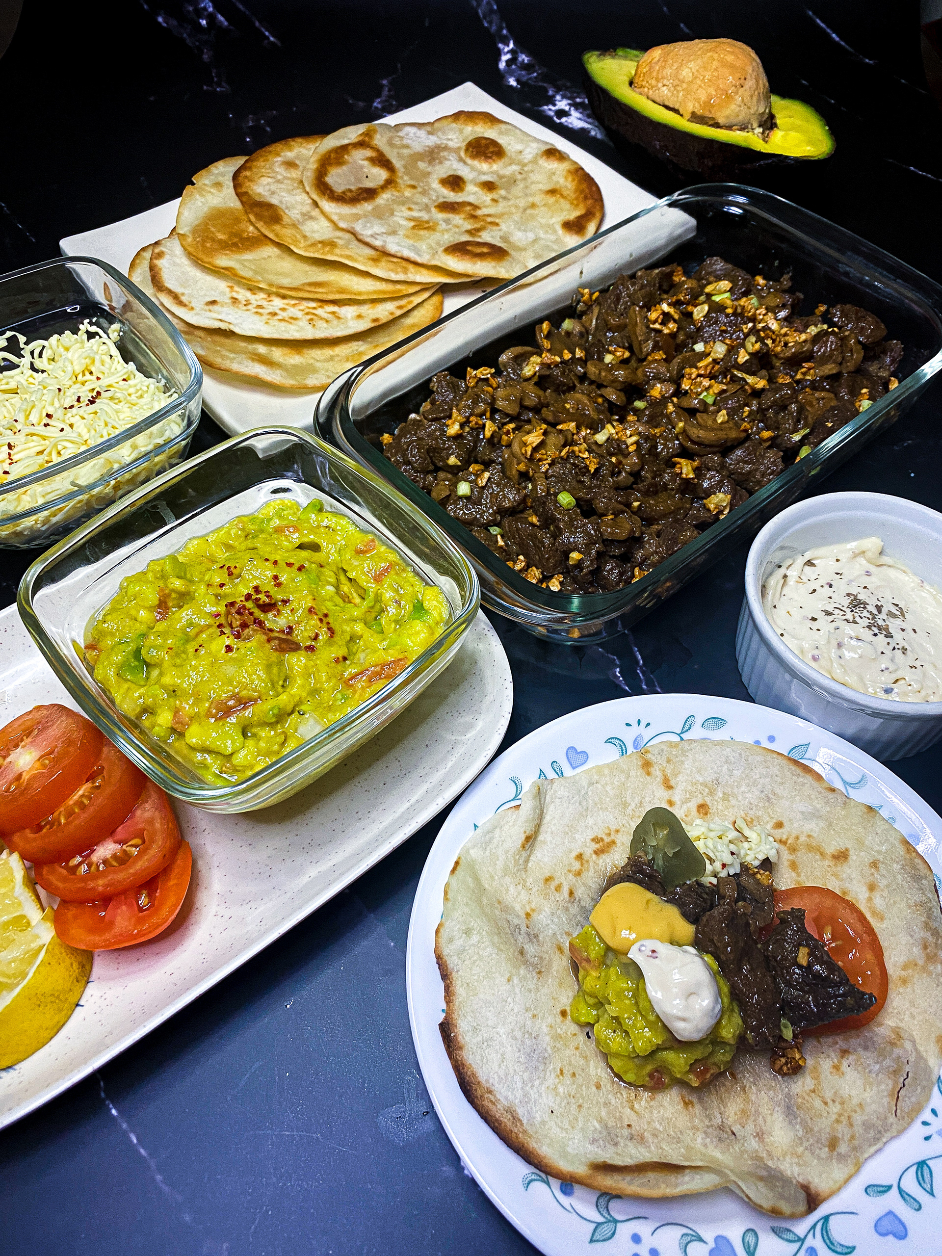 Let’s wrap this week up with some love (beef and guac)❤️ Beef Salpicao soft tacos. 🌮 Added some 🧀 🍄🥑🧄 aioli 🍅 🍋 ✨❤️ #GrubBernal #homemadefood